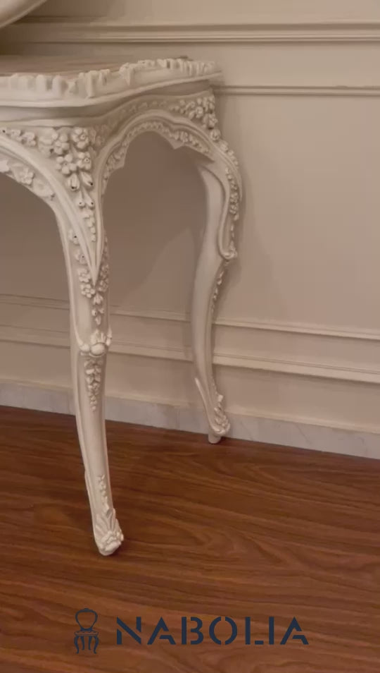 كونسول اوف وايت مصنع من الخشب الزان الطبيعي و مع برواز بمرايا و القرصة رخام
